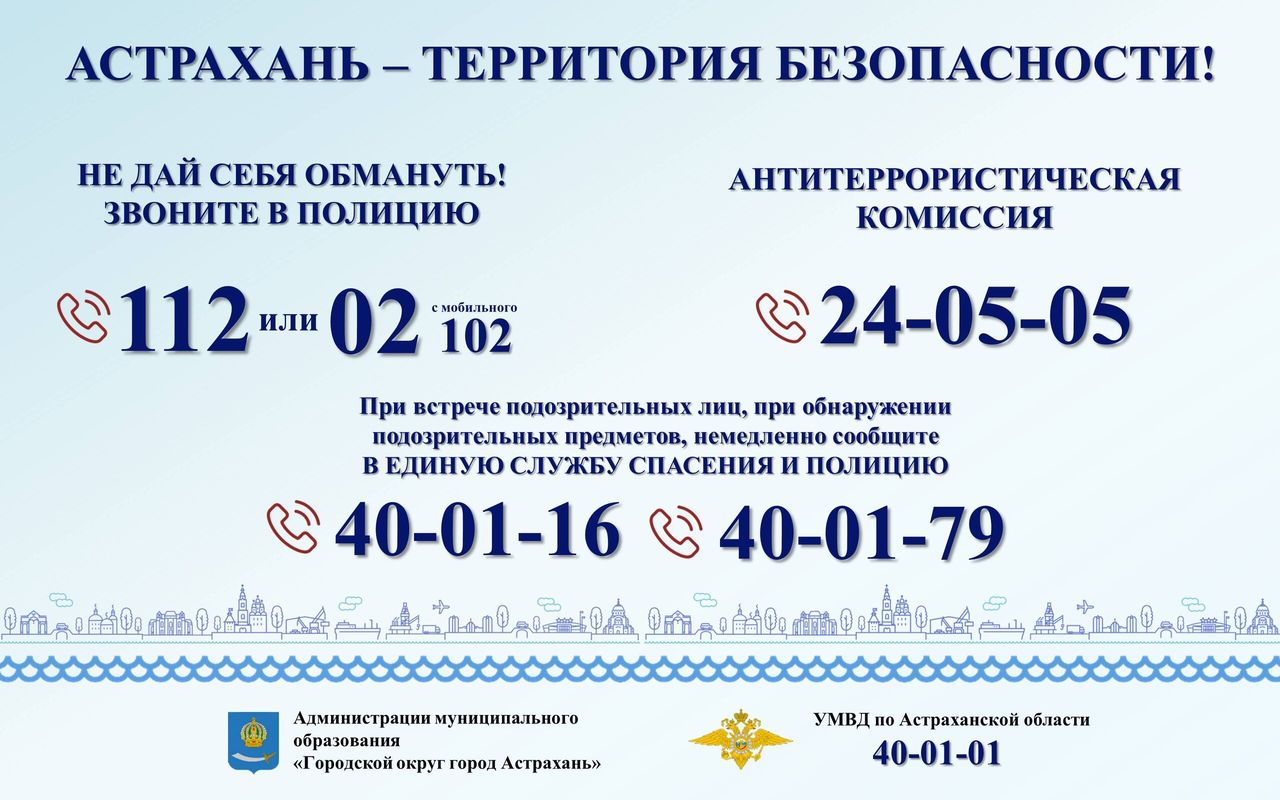 - 8(8512) 400-015 – Управление министерства внутренних дел Российской Федерации по Астраханской области.